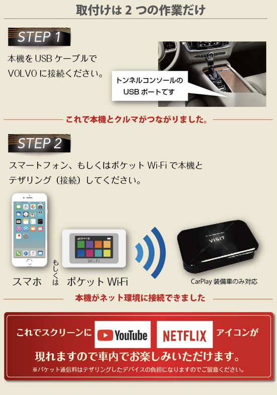| 〈安心してご利用いただけます〉 VOLVOディーラーは改造車を受付してもらえないケースが多々あります。 でもご安心ください。 本機は内部パーツを改造するものではないので 点検等でディーラーに入庫する際は本機をUSBケーブルから取り外していただければ問題なくディーラーのサービスを受けられます。 |